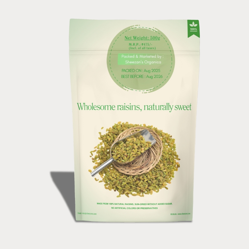 Have you been looking for an online store to order organic raisins in India? Do you want high-quality, fresh raisins in India? Look no further; order organic raisins in bulk or required quantity from Sheezan’s Organica today.